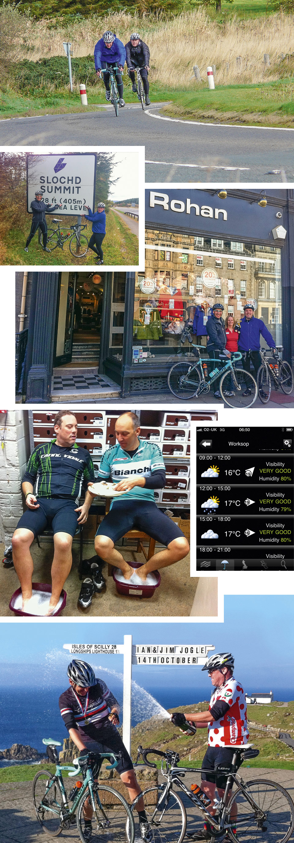 "We were supported all the way by a combination of people. My wife Andria supported us through Scotland and then again from Bristol to the finish. For the section between North East England and Bristol, three of the Rohan Area Managers gave their time. What this meant was that we only needed to carry a spare inner tube, some water and a coat, and that was it. We didn’t need panniers and we could use our road bikes without loading up with soft luggage and clutter.We did this purely for the adventure. We love riding our bikes and this was a great way of linking far-flung stores with a pretty adventurous road ride."