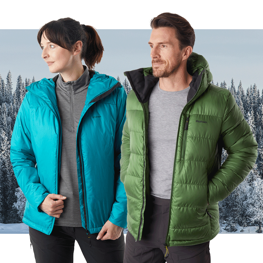 If rain is a possibility, it’s advisable to use synthetic insulation as it can retain its thermal properties while wet, we recommend our Helios Jacket. If you’re expecting cold and dry conditions, then our Eos Jacket with 700 fill power down insulation will provide the best warmth for weight.
